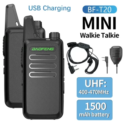 Portable Baofeng BF-T20 Mini Walkie Talkie – USB Charging UHF Two Way Radio for Hotels, Hunting & More