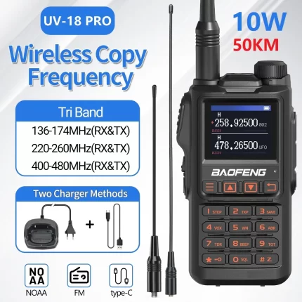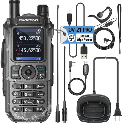 Baofeng UV-21 Pro: Tri-Band Waterproof Walkie Talkie with 999 Channels & 16 KM Range – USB-C Rechargeable