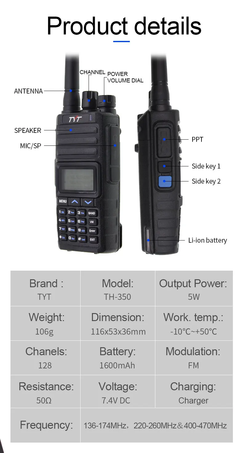 Be the first to review “TYT TH-350 High quality radios aviation tri- band 136-174MHz 220-260mhZ 400-470MHz walkie talkie radio comunicador” Cancel reply