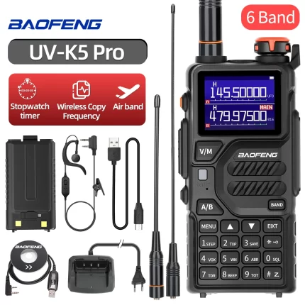 Baofeng UV-K5 Pro Walkie Talkie – 12W Air Band Ham Radio, Long Range Two Way Communication